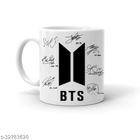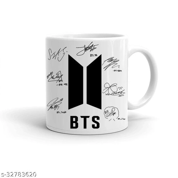 BTS Sign Printed Ceramic Coffee Mug Material: Ceramic Pack: Pack of 1 Product Length: 85 mm Product Breadth: 85 mm Product Height: 95 mm Capacity: 350 mL Both Side Print :: Pure White Mug :: HD Print Country of Origin: India